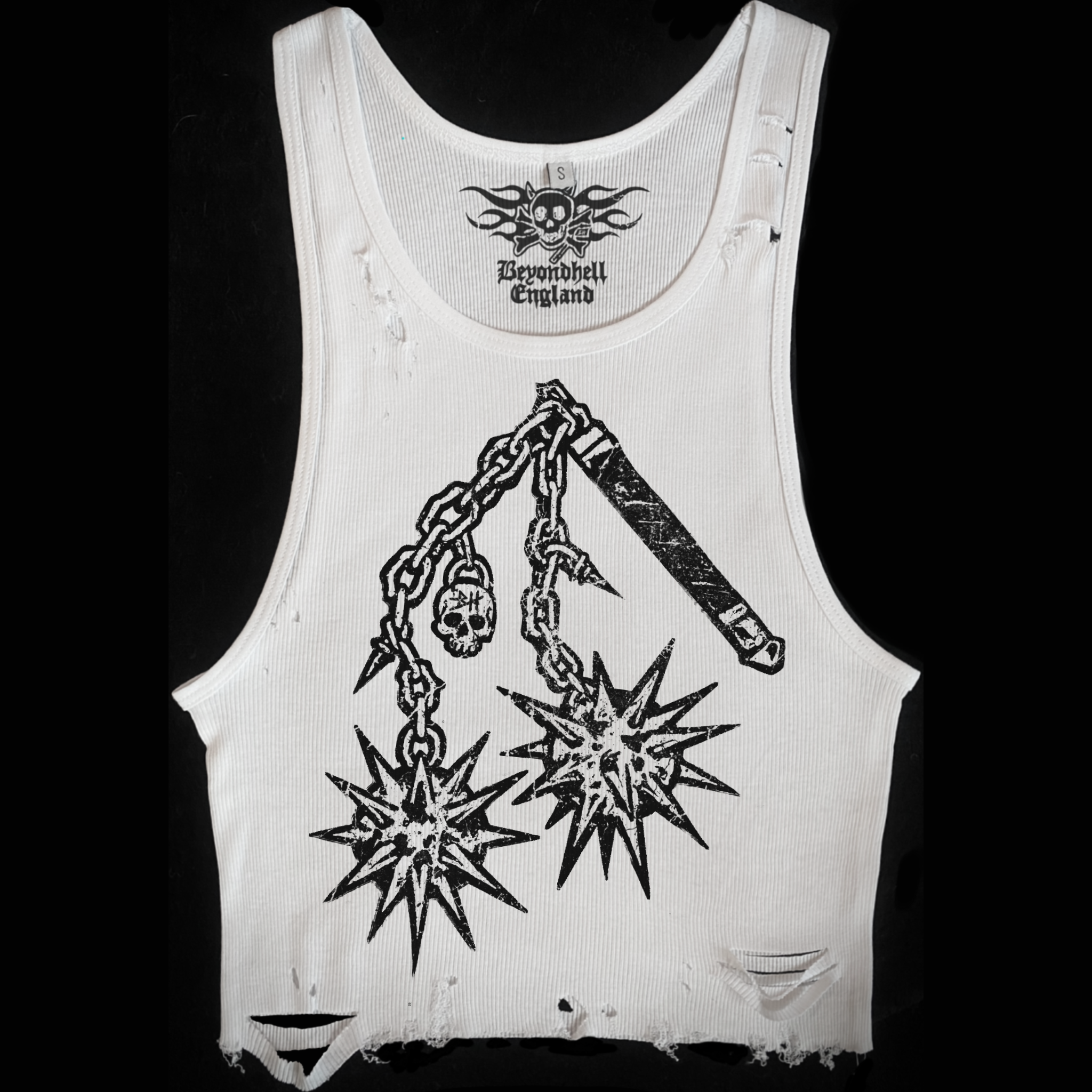 Vintage inspired graphic, hand printed on a classic ribbed vest with a raw hem. Unisex