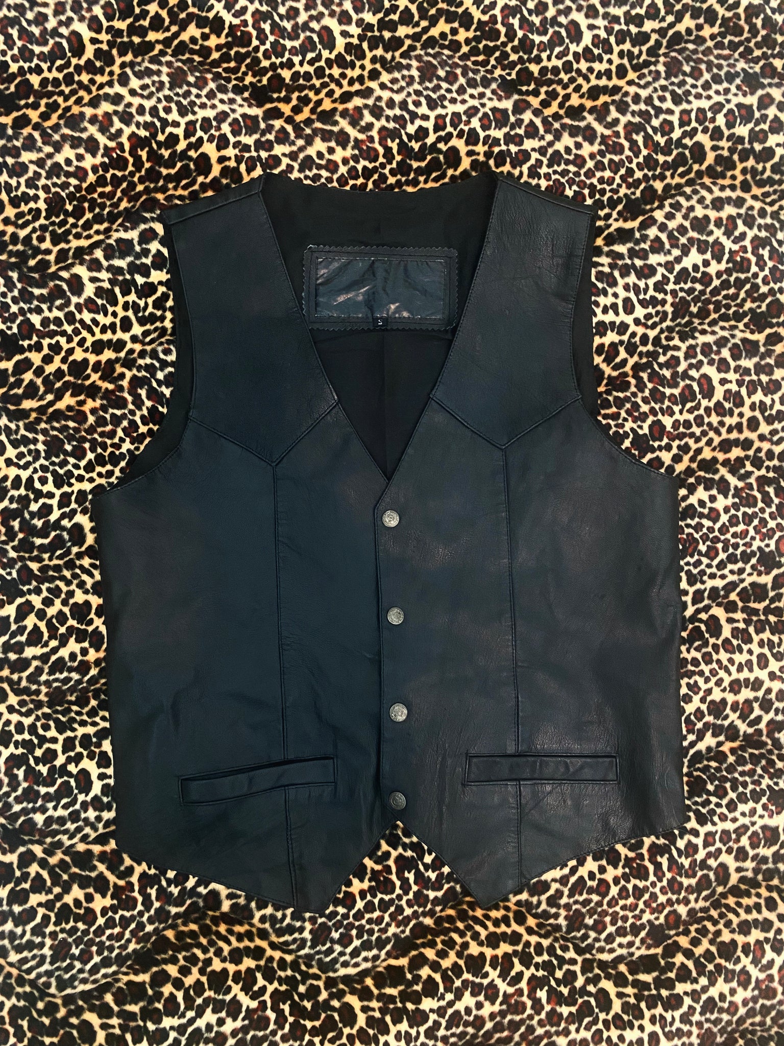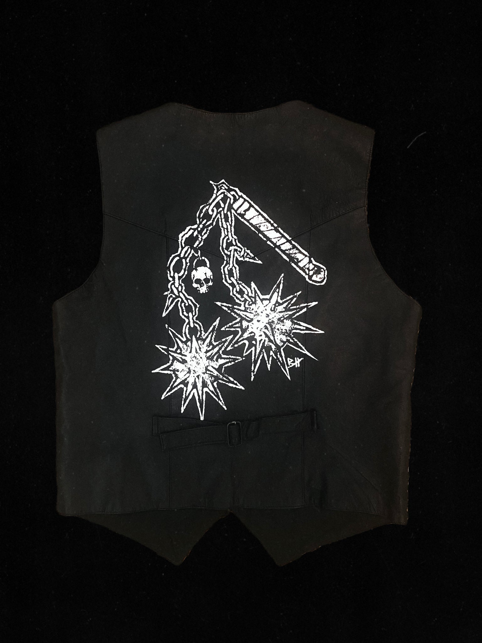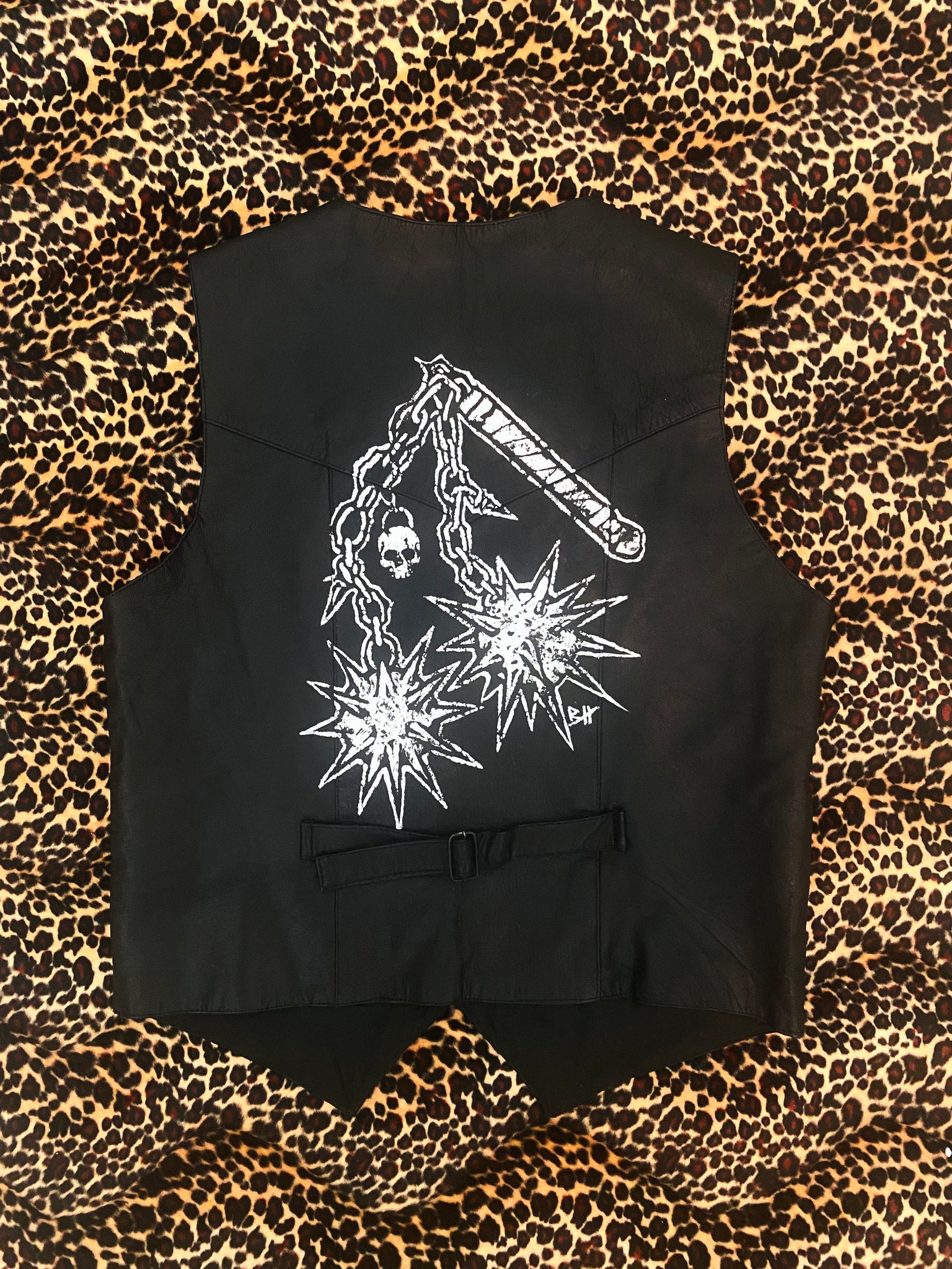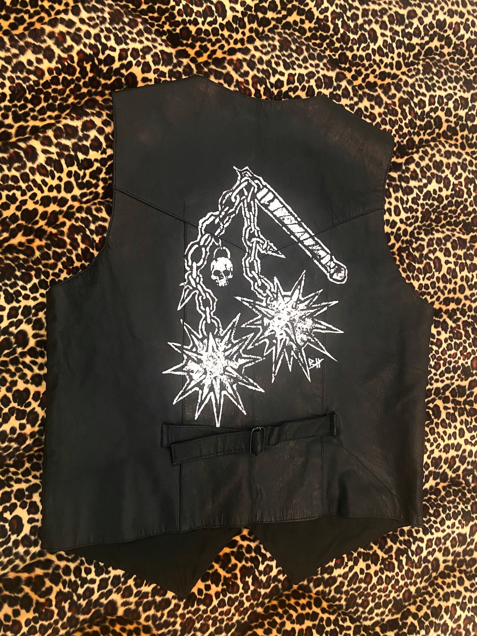 Painted on: Vintage Leather. This one is slightly thinner than what we usually work with so we’ve priced it with that in mind 🖤 Still a cool piece!